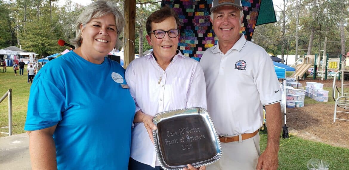 The two-day event drew thousands to Spinners Park in Prattville. In the closing hours of the event Sunday, club members and Prattville Mayor Bill Gillespie Jr. presented the Spirit of Spinners award to a deserving volunteer and this year that is Jane H. McCarthy, of Prattville!