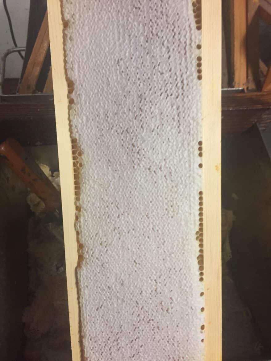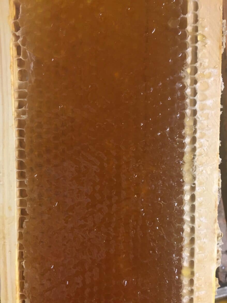 It comes in a small jar to a five-gallon bucket. Depending on the time of year and the type of crops the bees are pollinating, that affects the direct flavor and color of the honey that the bees produce. Honey from the early spring will be lightest in color and the mildest flavors. As the summer progresses the darker in color the honey becomes and more flavorful as well. “Most people around here know what Kudzu is. It’s a vine that takes over the world. It has a purple flower that produces a purple nectar, and in a jar, it looks black because it’s so dark. But put it on a paper plate and you can see it’s purple like grape jelly. When the goldenrods and ragweed just finish blooming it’s almost as dark as used motor oil and a much stronger flavor,” Mills said.