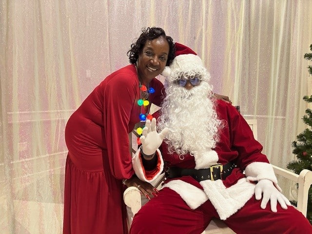 A big tradition at the party is dancing to golden oldies and to favorite Christmas carols. Lunch was served, with chicken, macaroni, black eyed peas, and cornbread washed down with juice or milk. Nobody went home hungry. So many people came to the party that Daisy Bolden, our organizer, and our Nutrition Coordinator had to order more meals.