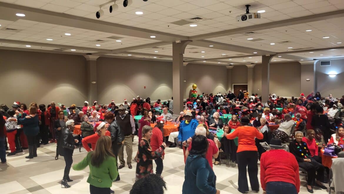 Central Alabama Aging Consortium threw its annual Christmas party for seniors from Autauga, Elmore, and Montgomery Counties Friday at the Wetumpka Civic Center. Over 400 seniors attended, filling the civic center to near capacity. The party got rolling even before the official start of 9 a.m. as seniors could not wait to grab a table.