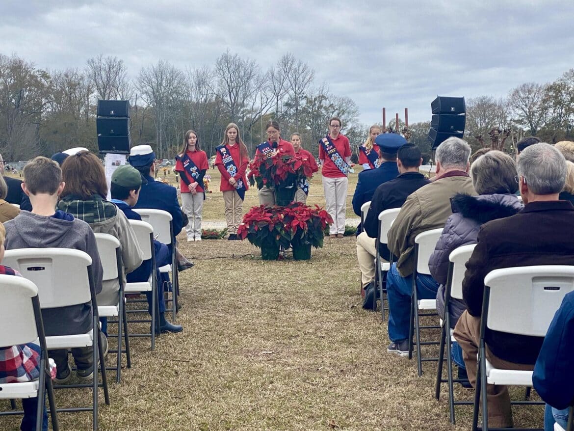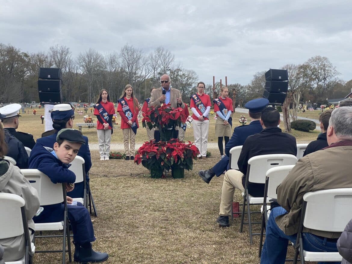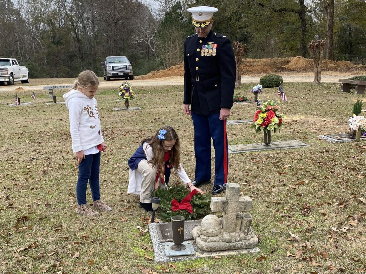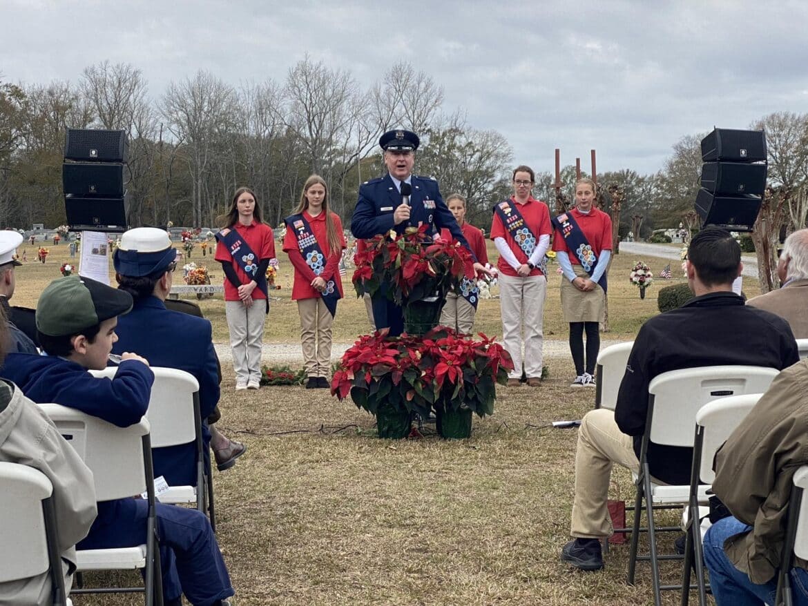 On Saturday, the American Heritage Girls Troop AL0125 hosted the National Nonprofit Wreaths Across America (WAA) event held at the Brookside Memorial Gardens in Millbrook. This is the sixth year the cemetery has participated in the National program. The Wreaths Across America’s mission is to REMEMBER the fallen, Honor those who serve and their families, and Teach the next generation the value of freedom.  Across the country, 4,225 memorial sites participated and had over 2.9 million wreaths. There were approximately 65 planned events that participated in the Wreaths Across America across Alabama.