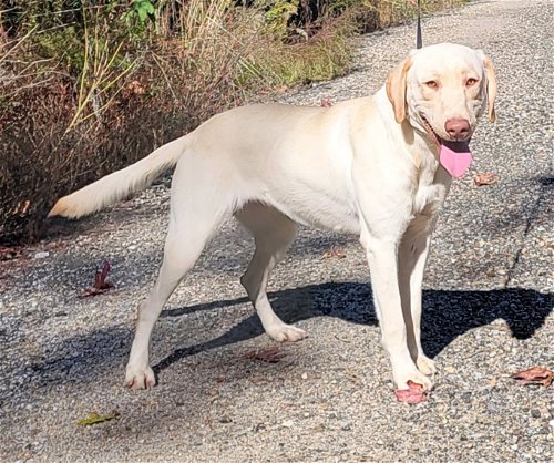 Savannah is an oh-so-sweet, 1 1/2-year old female yellow Lab, about 50 lbs. She was surrendered to us for “eating chickens.”  Savannah is very sweet, loves attention, good with other dogs.  We think she will be ok with cats – gets quite excited to meet them at first but then settles down.