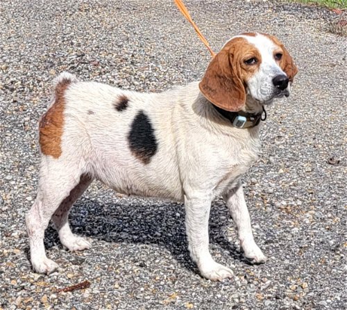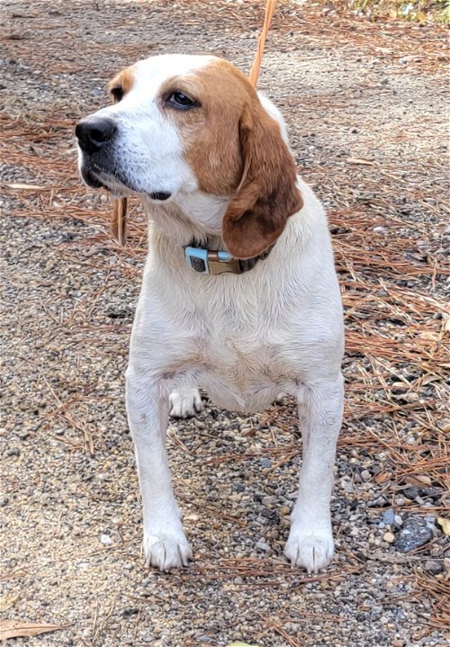 Shirley is a female Beagle, seven years old, 30 lbs. She was picked up as a stray and her owner just never came for her. She is a super sweet gal, great with other dogs, loves people, is pretty laid back but does still like to follow her nose.