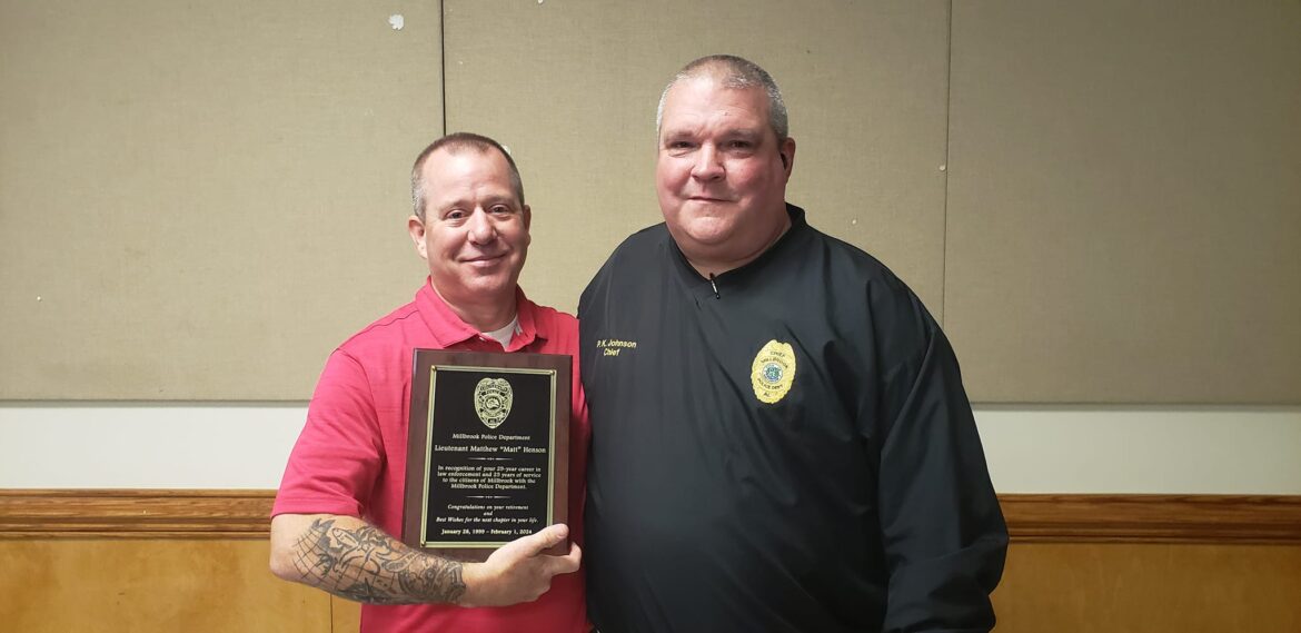We would like to wish Lt. Henson the best of luck in his new position, which will still be familiar and within the Millbrook community. Thank you for your service, and your continued service in the future.