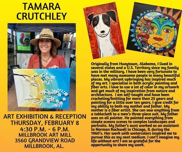 Reception set for artist Tamara Crutchley at Art Mill Thursday in Millbrook