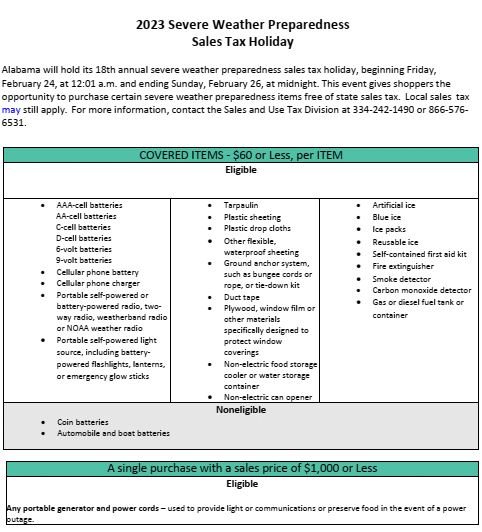 Severe Weather Preparedness Tax Free Weekend Starts Friday, February 23rd