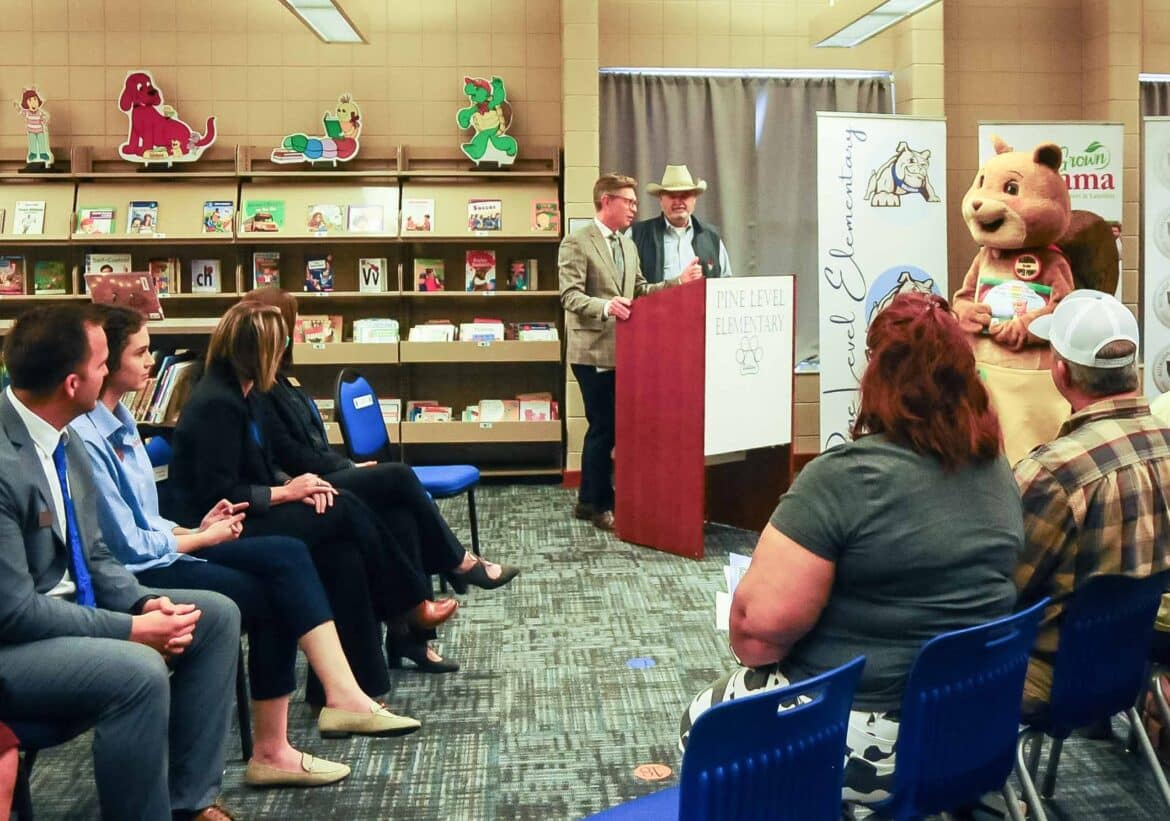 During the press conference Commissioner of the Alabama Department of Agriculture Rick Pate spoke to the elected officials, Pine Level students and Short about the importance of learning how to read, as well as knowing where the food on our plates comes from.
