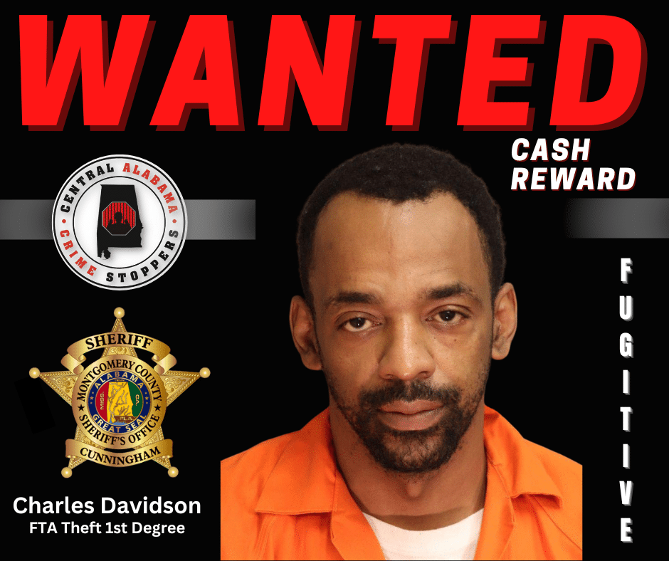 Central Alabama CrimeStoppers is offering a cash reward for information that leads to the location and arrest of Davidson.
