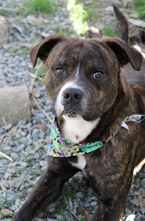 Huggy is a 2-3 yr old male Pit, about 45 lbs, brought to us as a stray never reclaimed. His name suits him as he just wants to be in your lap and getting hugs and cuddles and would love to be a couch potato with a loving family. Huggy is good with other dogs, loves treats (of course) and will give slight attention to toys, then be content laying in the shade for a while.