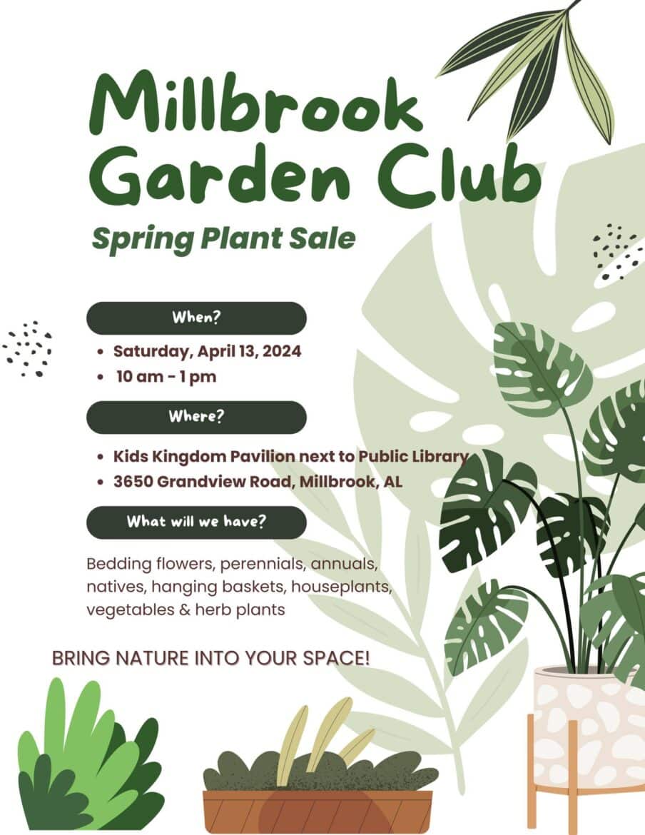 SAVE THE DATE – April 13, 2024. The Millbrook Garden Club will be having their annual Spring Plant Sale under the pavilion at Kids Kingdom Playground. It will be held from 10 a.m. to 1 p.m. It is time to spruce up your home with a touch of nature!