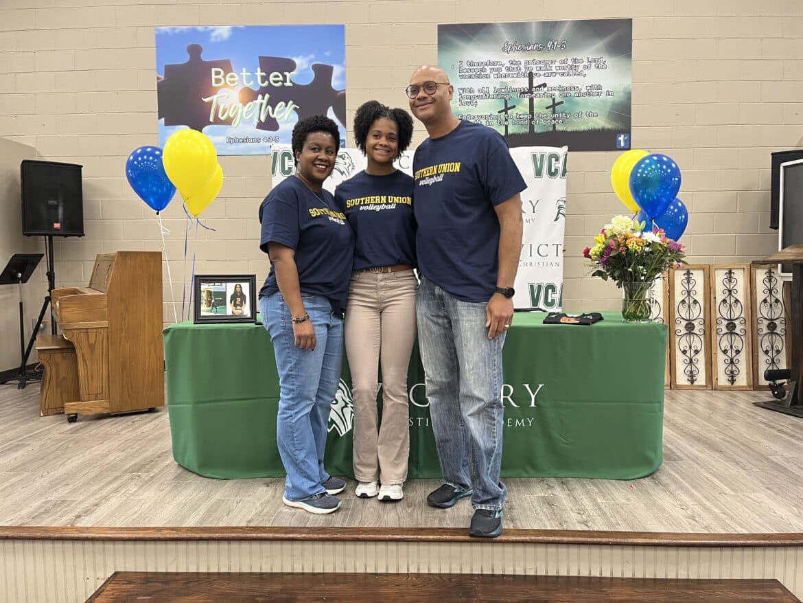 “This is a big deal, signing a letter of intent. Volleyball is not her only sport, she played basketball and is playing softball right now, and overall, she’s a great athlete and even better person. The leadership that she brings and her Christian testimony, Southern Union, you’re gaining a great player,” Victory Christian Athletic Director Adam Childers said.