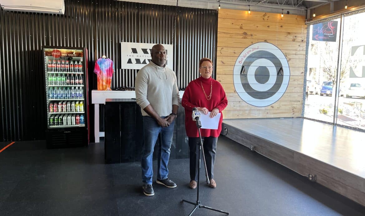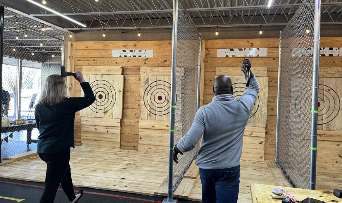 Ready, aim, Throw! The Prattville Area Chamber of Commerce hosted a ribbon cutting for The Battleground Axe throwing which officially opens Friday March 22nd.