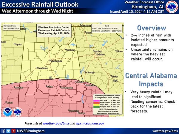 The corridor of heavy rainfall will reach southwestern portions of the area around Noon today, then become more widespread through the remainder of the afternoon. The main flooding concern will be across the southern portions of the area where two to four inches of rainfall accumulation is expected. If the environment is able to destabilize enough amidst the widespread rain, we expect the greatest potential for some strong to severe storms will also develop across the far south/southwest this afternoon.