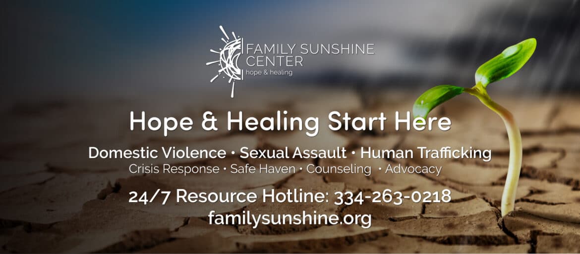 If you are in a domestic violence situation, please know that help is available. Click this link for more information, help and shelters across Alabama – https://www.domesticshelters.org/help/al