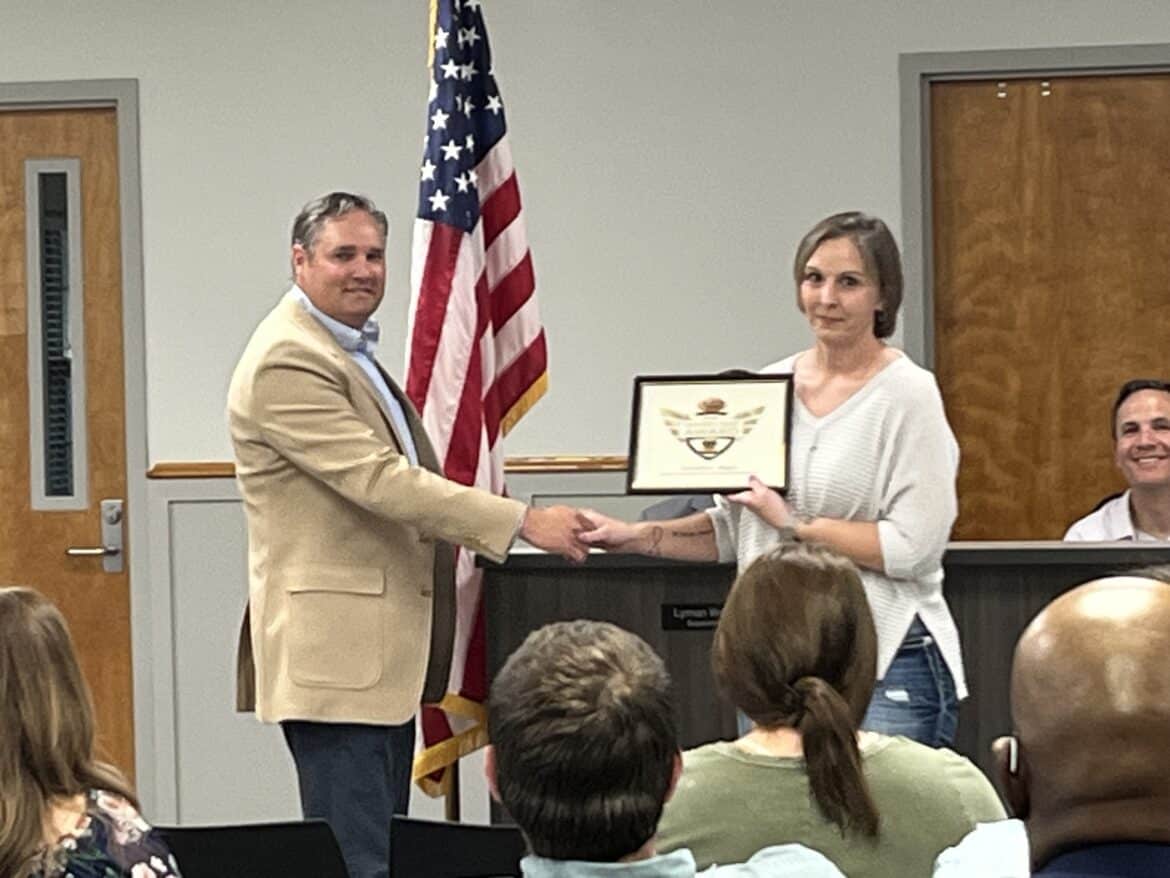 The Board also paid tribute to the Teacher of the Year to third grade teacher Laura Fennell. Fennell teaches at Pine Level Elementary in District 5 and was awarded Teacher of the Year. She is the first teacher in Autauga County to make it to the top 16 in the state.