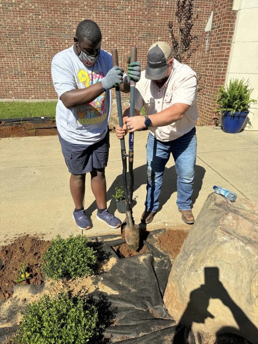 Autaugaville School’s new Eagles Garden welcomes students, faculty, and campus visitors with various school-colored plants! This project is the work of several community partners with the goal of teaching employment skills to the school’s special needs students through hands-on supported tasks.