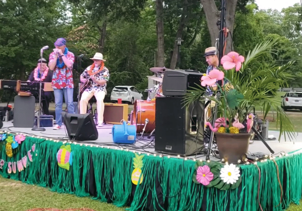 In lawn chairs and on blankets, neighbors visited, new friends were made, and old acquaintances smiled at familiar faces. It was a great evening for relaxing with a tropical theme.