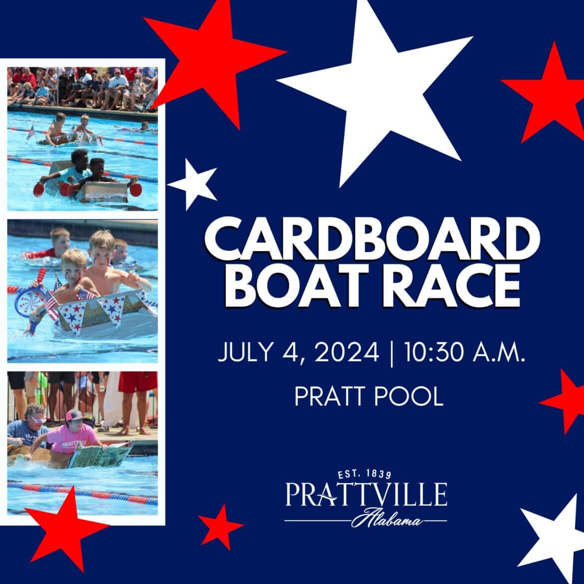 Looking to add a new tradition to your family 4th of July activities? Register to participate in our annual Cardboard Boat Races at Pratt Pool.  The building of the boats begins at approximately 10:30 a.m., (immediately following the parade).