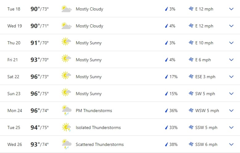 10-Day Weather Forecast June 17, 2024 From The Weather Channel Elmore and Autauga County Today Mostly Cloudy 92°/73° 4% ESE 9 mph