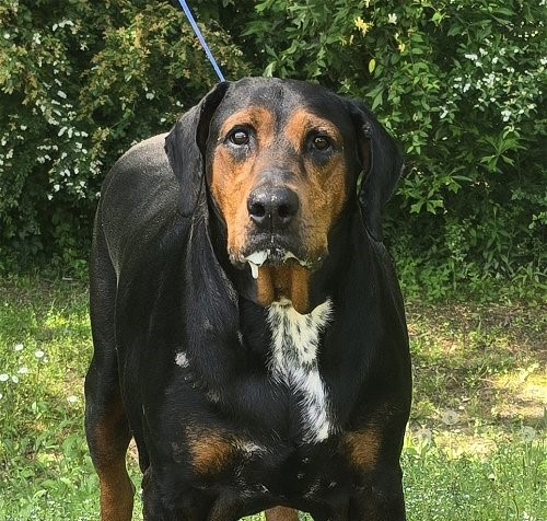 Percy is a seven-year-old big boy whose owner loved him but due to circumstances was unable to keep him. Percy is a big chunk of boy – 140 lbs but also needs to lose some weight. He is house trained, crate trained and great with other dogs, cats and children; likes to sleep on the couch and loves attention. Percy is a giant lap dog and incredibly sweet. Percy has one special need as he must take Thyroid Medication (1 1/2 tabs of 1.0 mg Thyroid medicine/once a day). This is not an expensive med and the pills are tiny so super easy to give in food or a treat. Percy has a lot of love to give so who will give this hunk of love a soft-landing spot for many years to come.