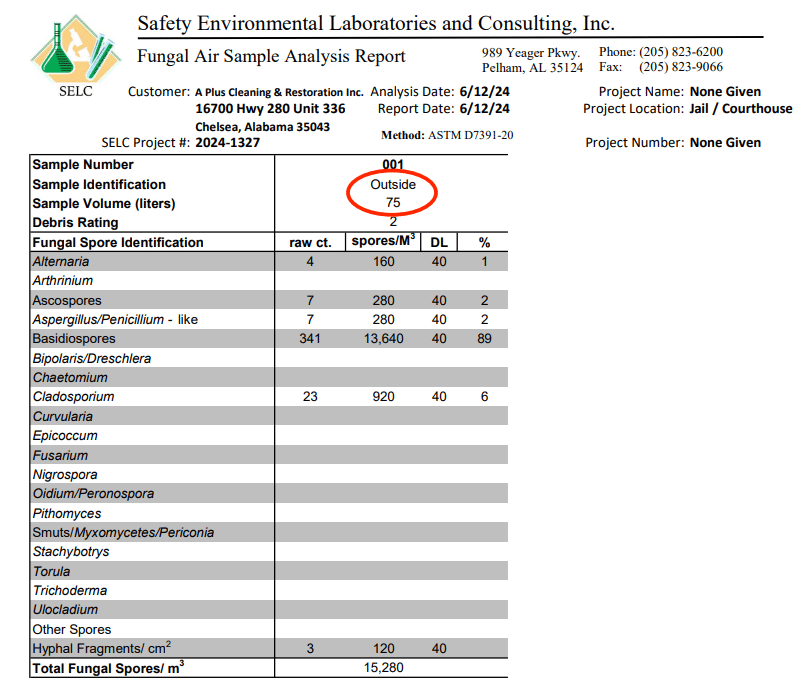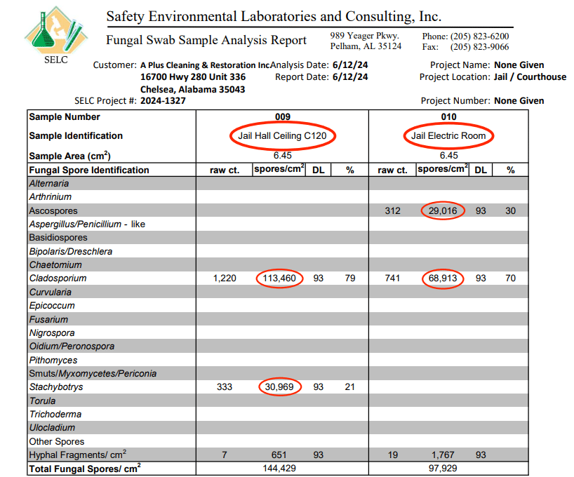EMC, Inc confirmed during their visit they performed general site observations with the jail facility that has exhibited mold/fungal growth. (Continue reading below for second report for A Plus.)