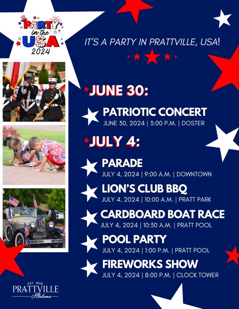 Get ready to “Party in the USA” as Prattville kicks off July 4, with the Parade at 9 am. This year’s Grand Marshal is June Weedon Dorough. June is the Assistant Branch Director and Ability Programs Director at the Prattville Bradford Branch YMCA. She has been in the Field of Dreams and Ability Programs for 7 years. She is a member of the 2024 Leadership Autauga Class, has served on the board of the ARC, and is a current member of the Prattville Civitan Club.