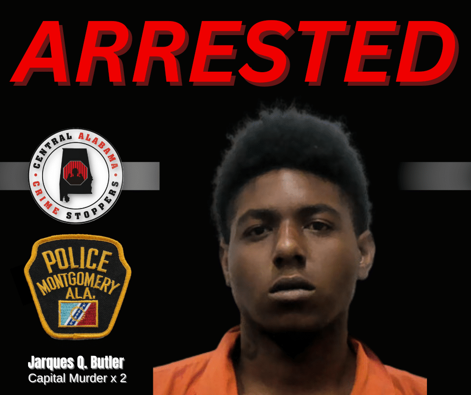 Investigators say Jarques Qushawn Butler, 18, was identified as a suspect in this ongoing investigation and has been charged with two counts of capital murder. Butler was taken into custody by law enforcement on Tuesday, July 2, 2024, in Montgomery, Alabama, and was apprehended after fleeing law enforcement on foot. Butler was transported to Montgomery County Detention Facility where he is currently being held without bail.