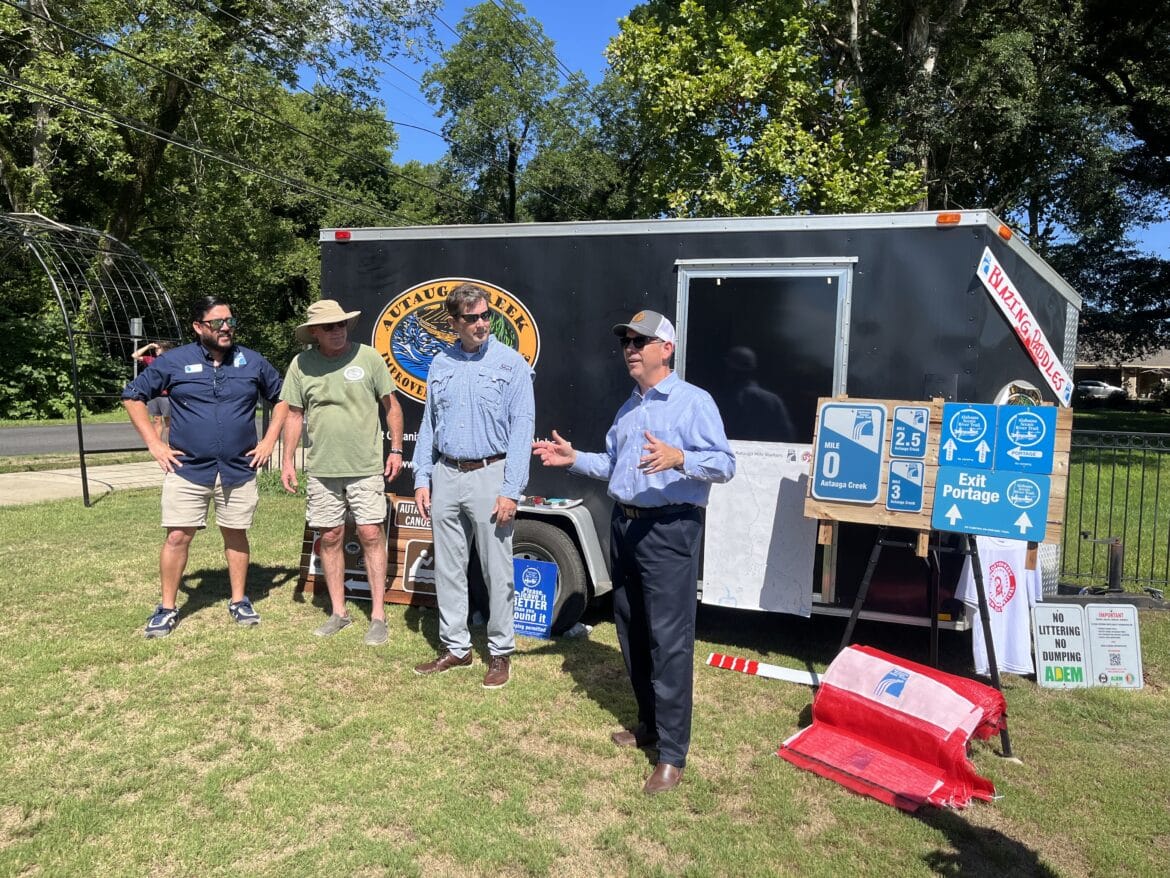 Senator Clyde Chambliss and State Representative Jerry Starnes were both present to send off the paddlers. Both Chambliss and Starnes were imperative in the funding for the Mile Marker Program, now fully installed along the Autauga Creek trail.