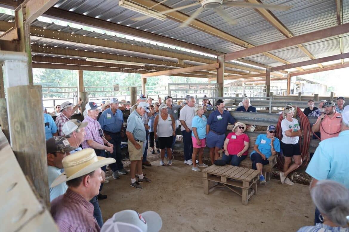 A multi-generational family farm, Autauga Farming Company operates cow-calf and row crop operations. During this stop, attendees viewed and discussed three-breed rotation of Angus, Charolais, and Simmental, forage and hay operations, and the management of cow-calf herd.