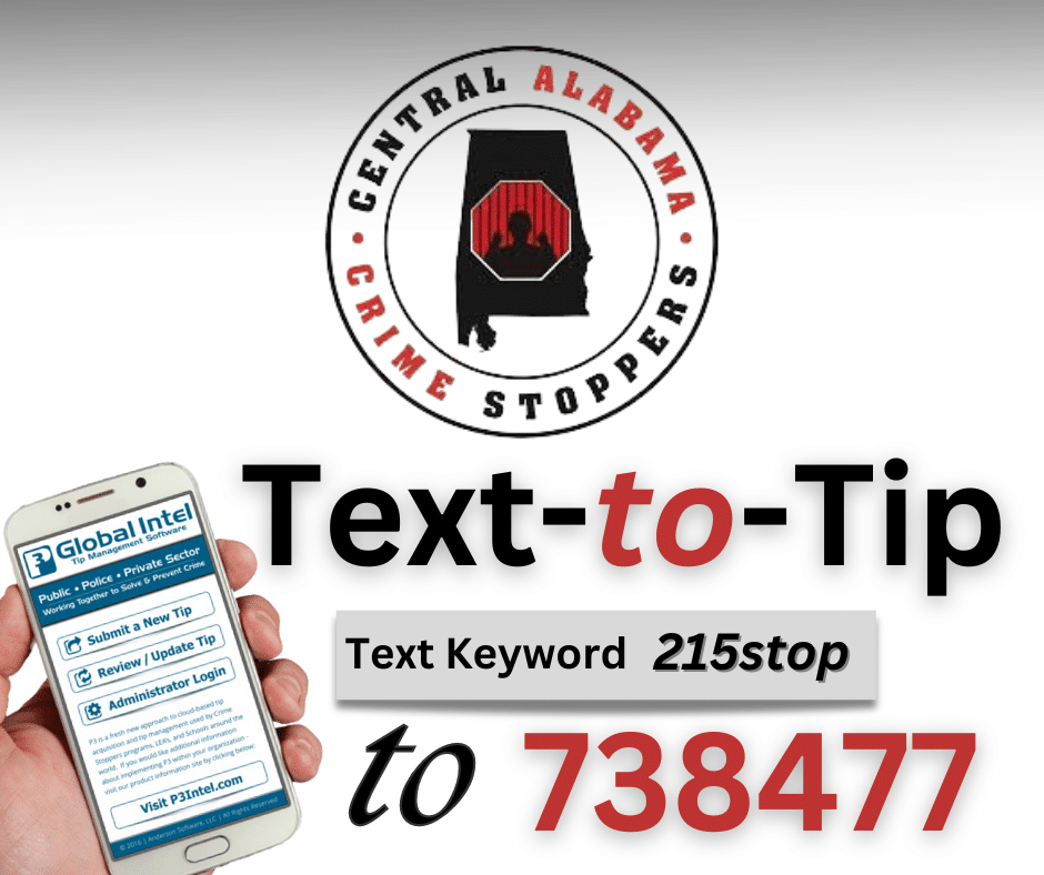 Central Alabama CrimeStoppers is pleased to announce a new way citizens can anonymously and conveniently submit tips to CrimeStoppers.