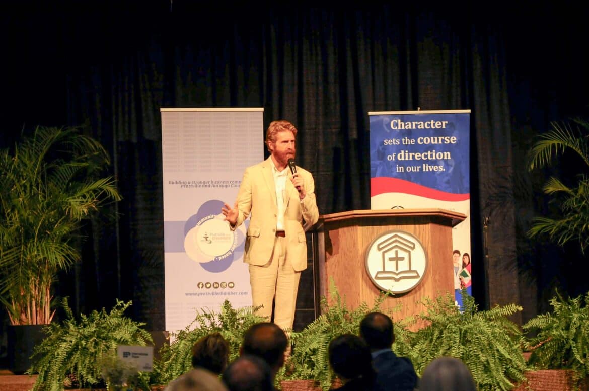 The 2024 Prattville-Autauga Champion of Character Sean Dietrich, or as others affectionately know him as “Sean of the South,” was honored at Tuesday evening’s dinner. David Lewis, treasurer and a member of the board of directors of the Prattville-Autauga Character Coalition stated Dietrich has demonstrated outstanding strength of character.