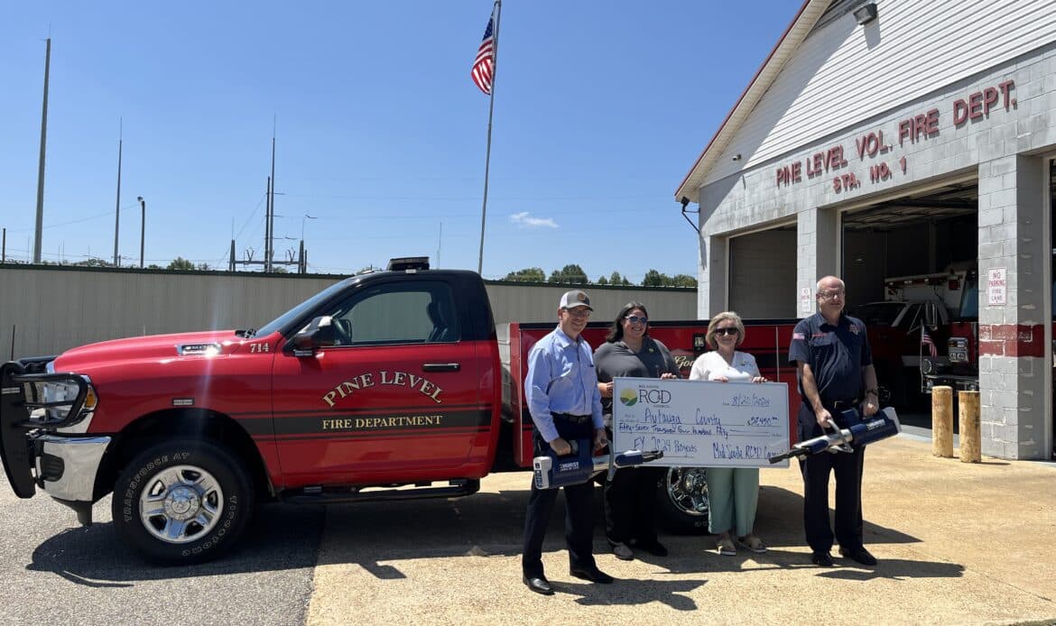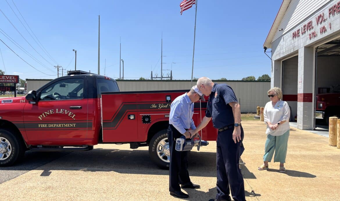 The media day continued the celebration at the Pine Level Volunteer Fire Department, where the department received a grant of over $15,000 for their new vehicle extrication equipment. Fire Chief Austin Worchester, who is also a Pine Level councilman, confirmed that the Pine Level Volunteer Fire Department is the busiest in the county, responding to about 1200 calls a year.