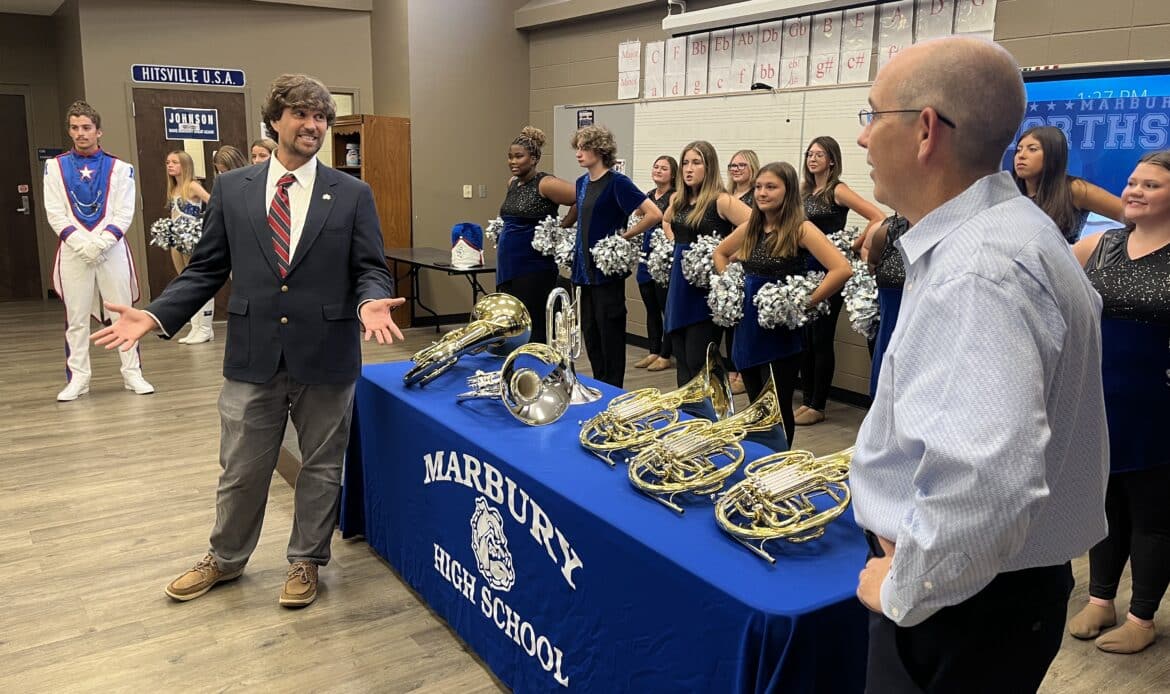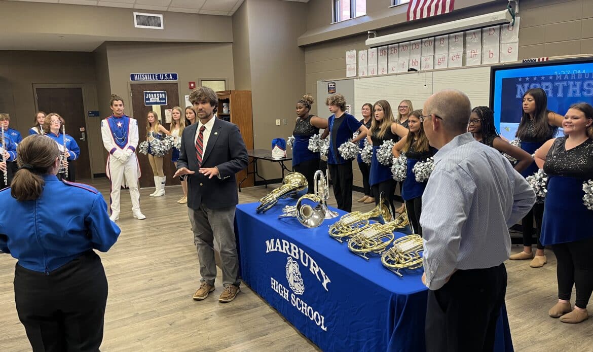 The last stop on the tour was at Marbury High School, where the Marbury High School NorthStar Band received a $22,250 grant for new instruments and uniforms.