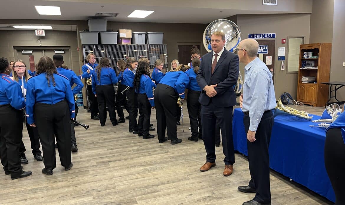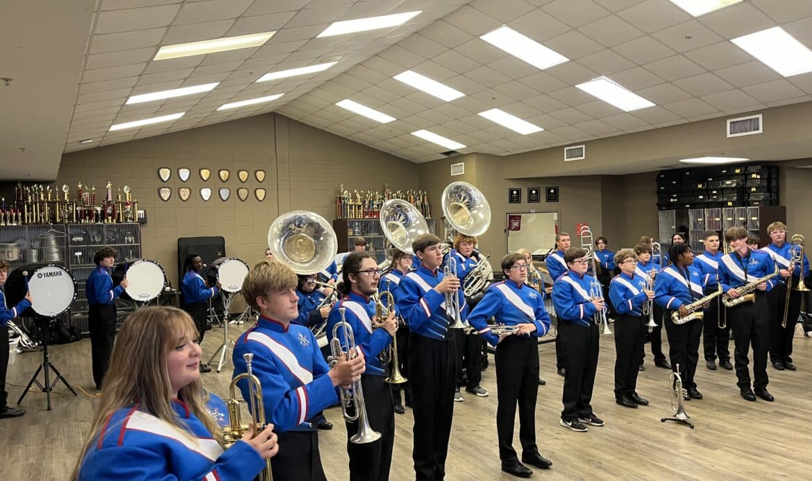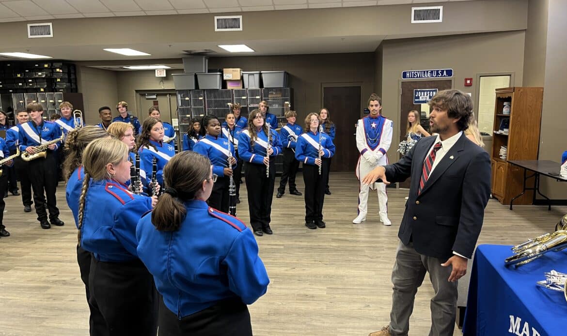 The halls were filled with the sounds of the Marbury fight song as Chambliss and Mid-South RC&D members entered the band room, a sea of instruments and royal blue. The students played the fight song as well as the ESPN theme song in their brand-new uniforms and instruments.