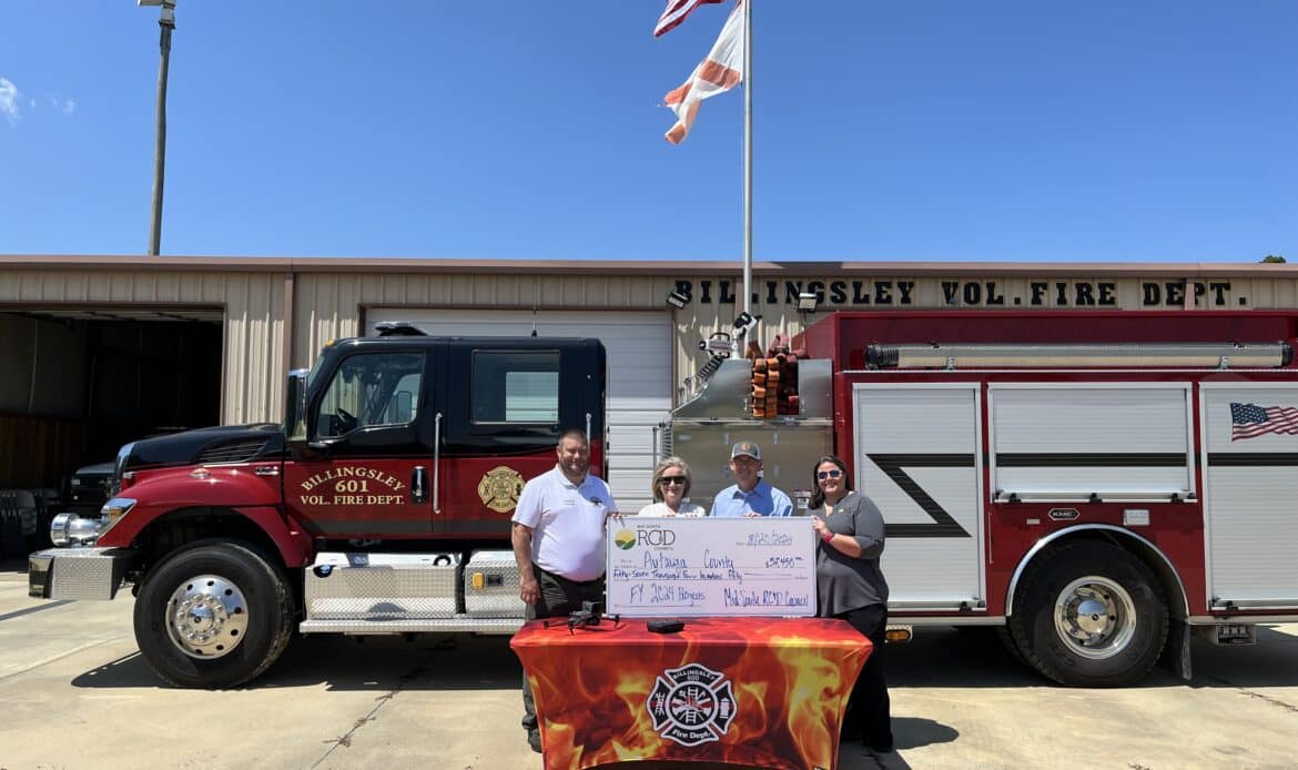 The first celebration started at the Billingsley Volunteer Fire Department where a $5,000 grant was awarded for their thermal drone in their Air Support Project. This drone, a DJI Mavic 3T Enterprise drone has the ability to take video, photos, mapping software, show hot spots, help in seeing through smoke and low light conditions, and provide eyes in the air for the ones fighting on the ground in almost any situation.