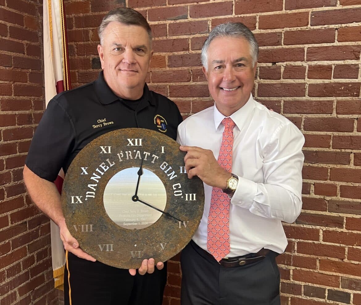 For his years of dedicated service, the City of Prattville gifted Brown with a custom clock that is made of an old saw blade from the Mill Pond.