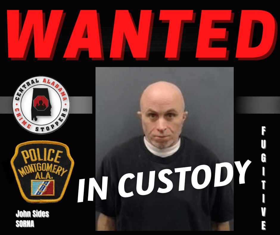 Sides was wanted for a violation of the SORNA (Sex Offender Registration Notification Act) by the Montgomery Police Department.