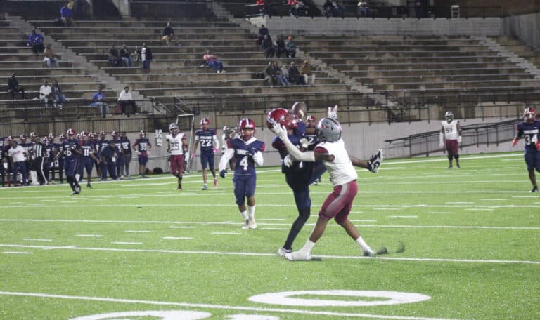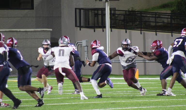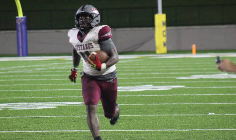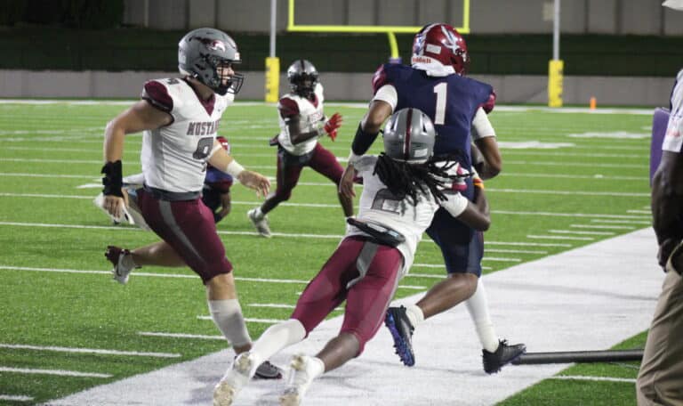 The Mustangs’ final points in the first half came on special teams, when Demarion Thomas blocked a punt and returned it for a touchdown. The Mustangs held a commanding 24-0 lead at the break.