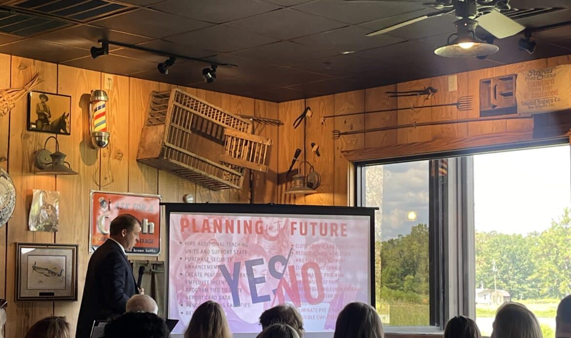 Woodfin’s presentation centered around an ad valorem school tax referendum increase designed to add an additional $7 million annually to the district’s local funds.