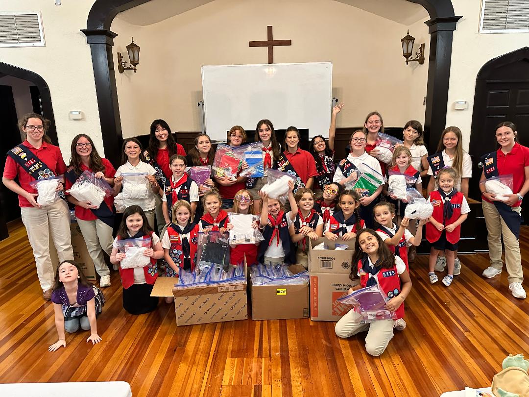 Our local AHG Troop AL0125 from Millbrook Presbyterian Church collected and assembled School Kits and Kids Hygiene Kits for the Mission North American Disaster Response Center. The center supports the relief efforts of the Presbyterian Church in America (PCA) by marshaling critically needed resources, supplied by God’s people, to communities in desperate need which have been affected by natural disasters and man-induced calamities. School kits are provided to children who have been impacted by a disaster or other traumatic situation to help provide the tools they need for schoolwork. Kids Hygiene kits provide comfort for children who have been affected by disaster.