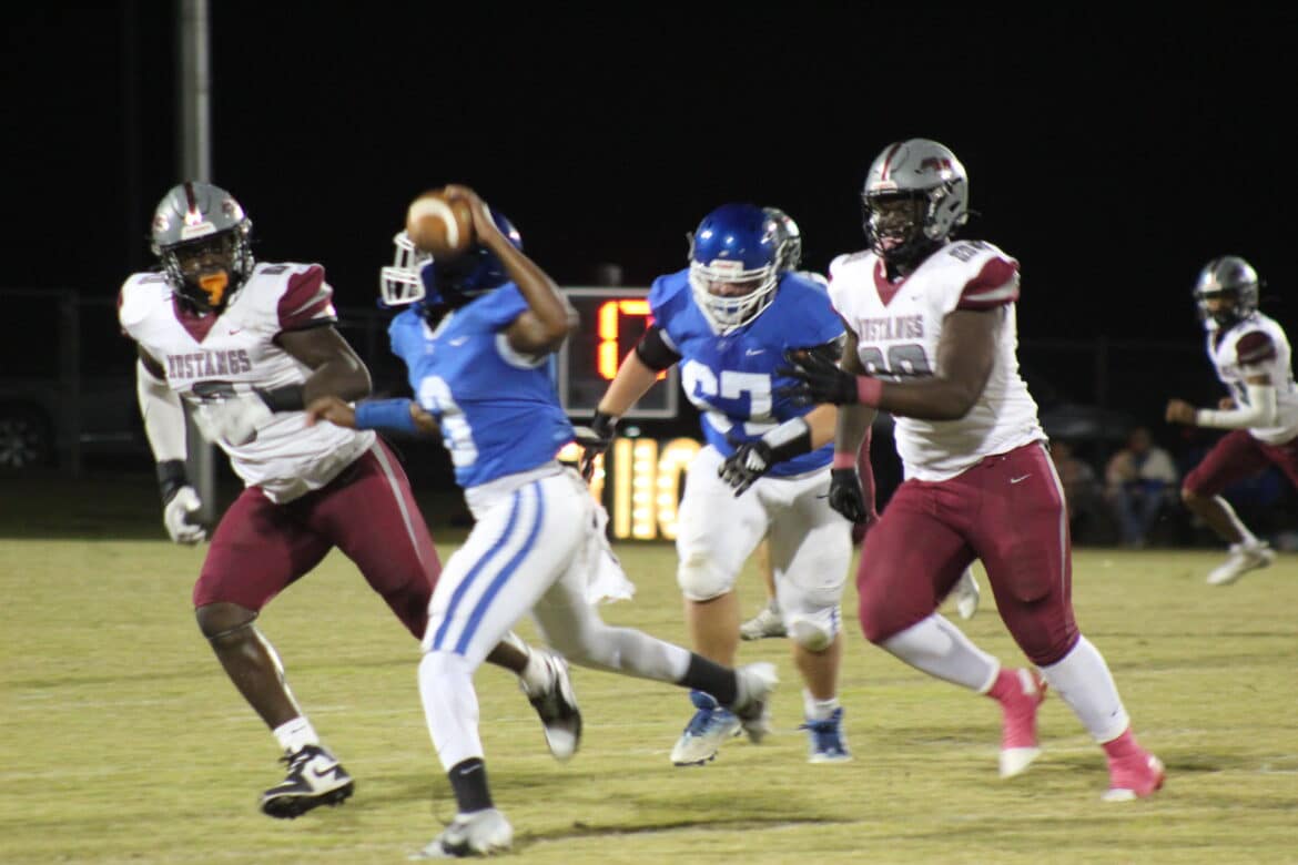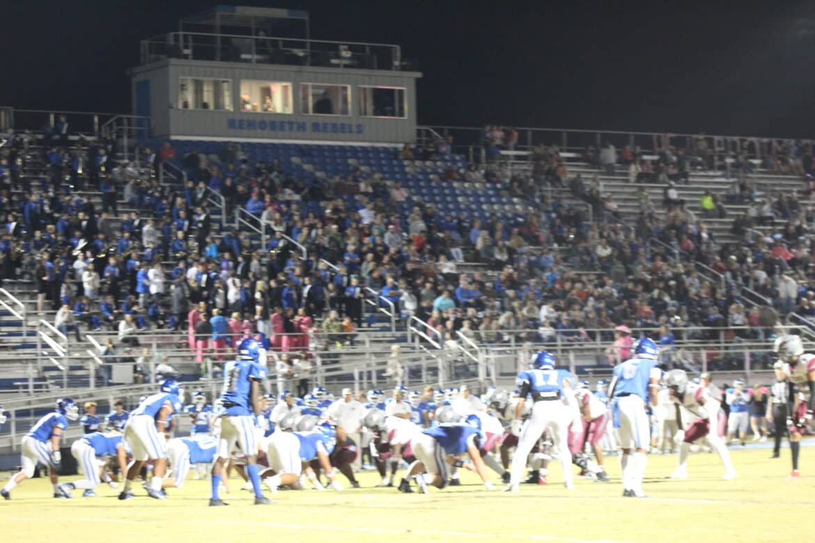 Everyone at Rehobeth High School knew who was getting the ball Friday night during the first three quarters when the Rehobeth Rebels hosted Stanhope Elmore in a Class 6A Region 2 football game. The Mustangs’ fans knew. The Mustangs’ coaches knew. The Rehobeth coaches, fans, and players knew. It didn’t matter. SEHS offensive linemen Macin James, Xavier Foxhall, Cameron Hodge, Raul Garrido-Mondragon, and Gabe Lewis made sure it didn’t matter with a dominant performance against the Rehobeth defensive line to lead the Mustangs to a 47-21 victory.