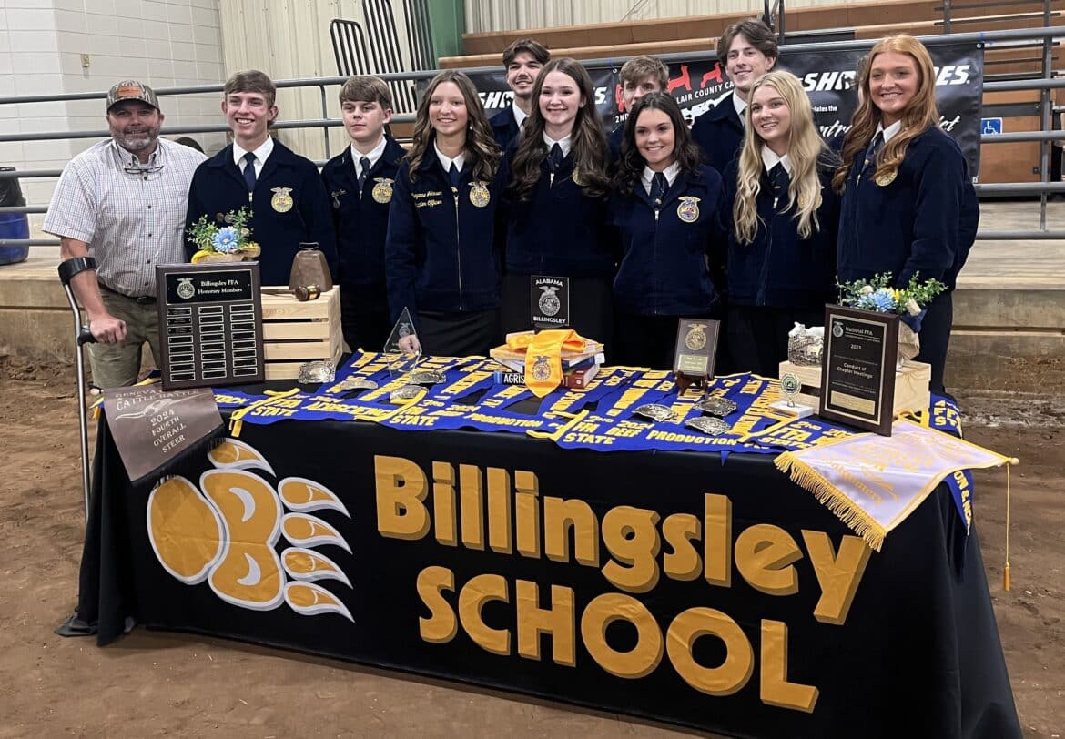 Billingsley High School student and FFA member Kayden Bland won the video submission for this year’s Farm City Banquet. In Bland’s video, she stated that Autauga County is home to over 370 farms with over 100,000 acres of farmland. Each farm typically consists of around 50-180 acres and 99% of those farms are still family owned Bland stated in her video.