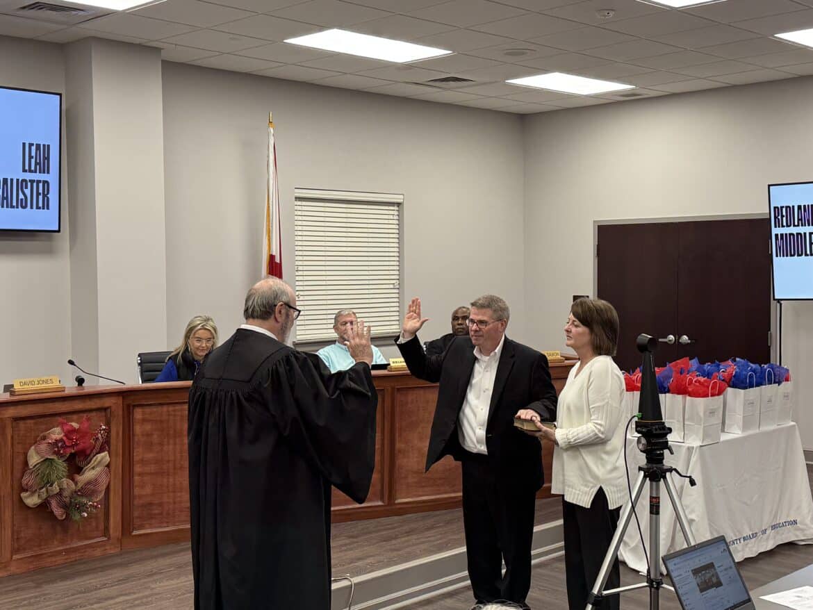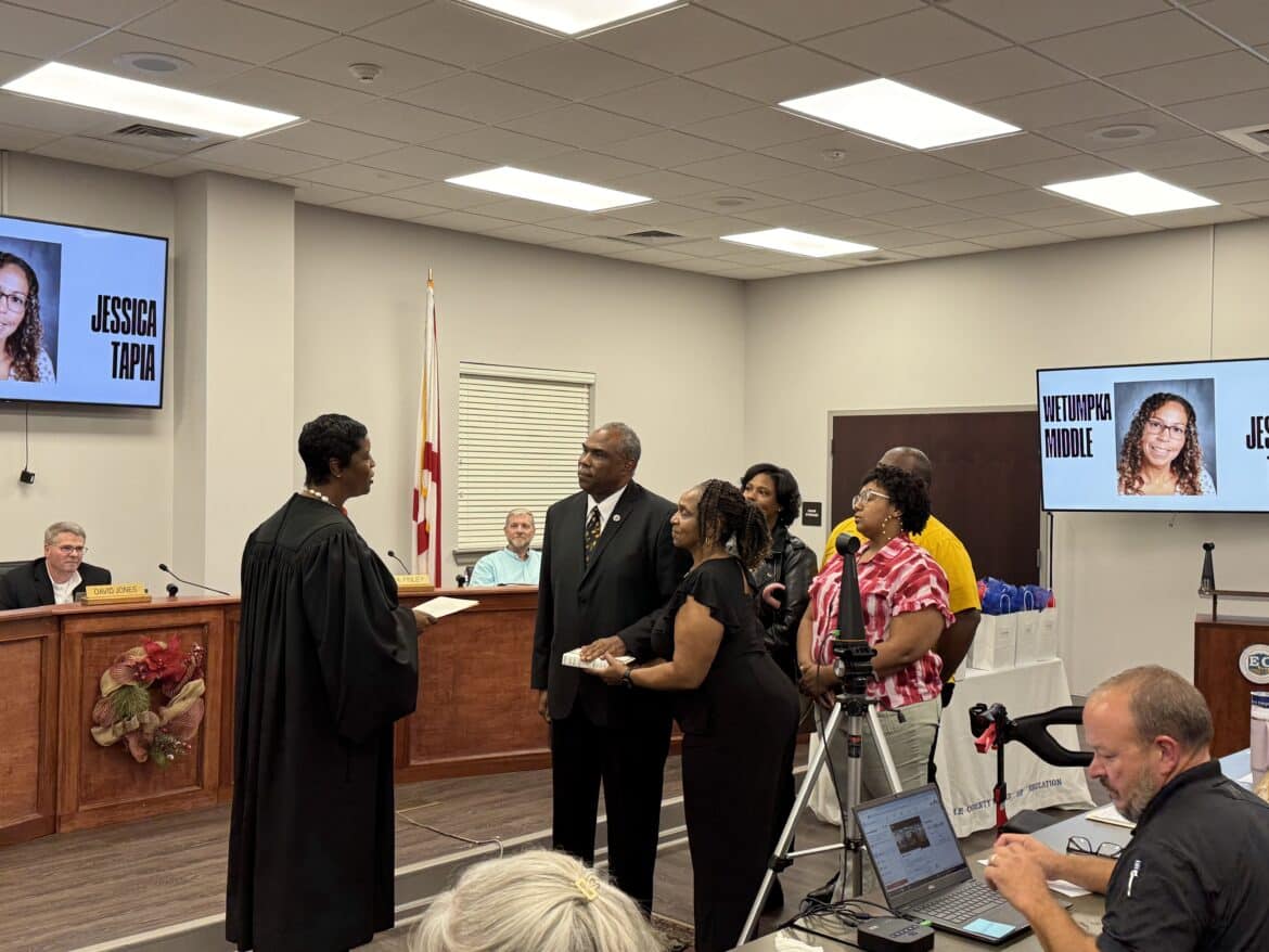 Before the regular meeting, a swearing-in ceremony was held for newly elected and re-elected board members Wendell Saxon, Josh Lett, and David Jones. The ceremonies were presided over by District Judge Tiffany McCord of Montgomery, Elmore County District Judge Glenn Goggans, and Probate Judge John Thornton.
