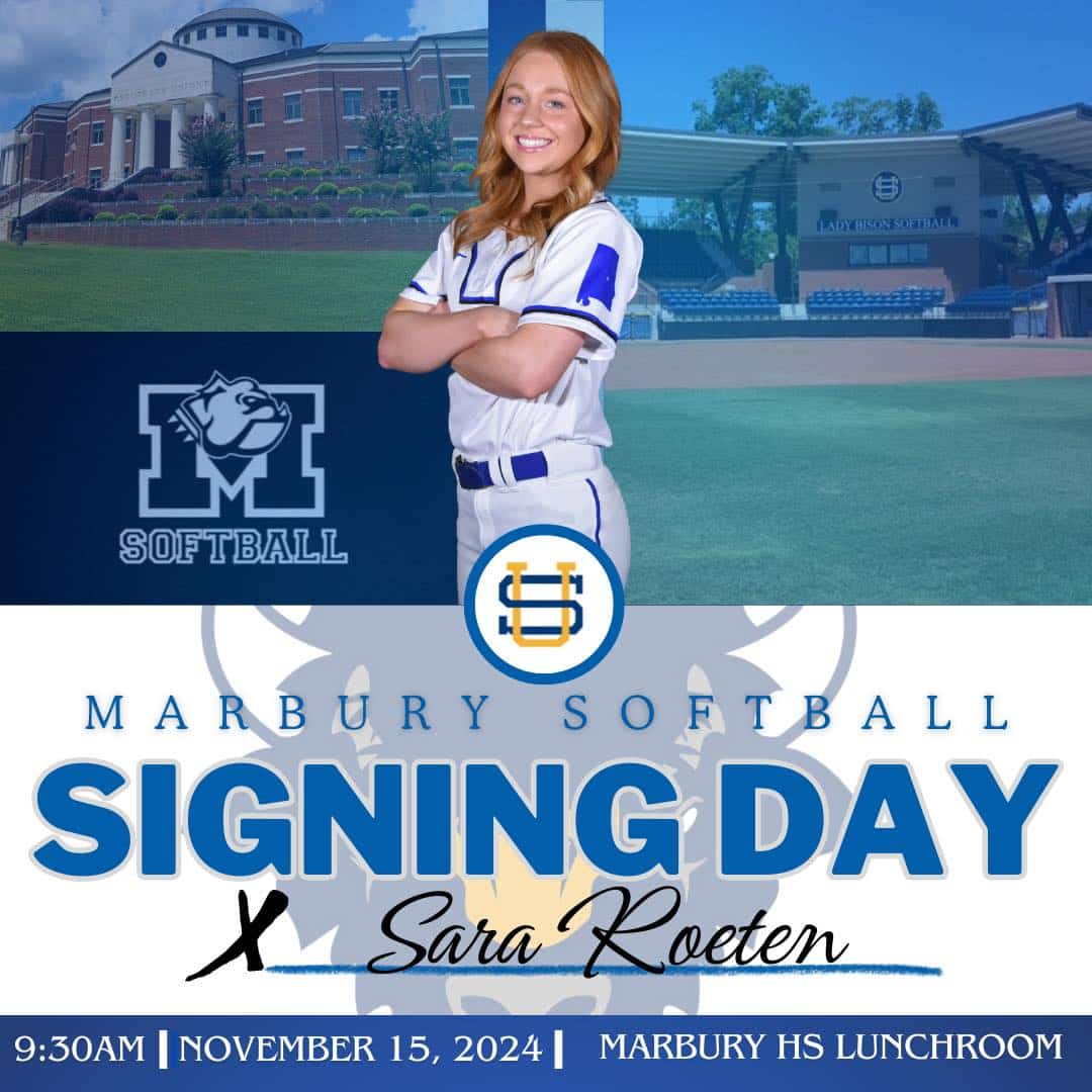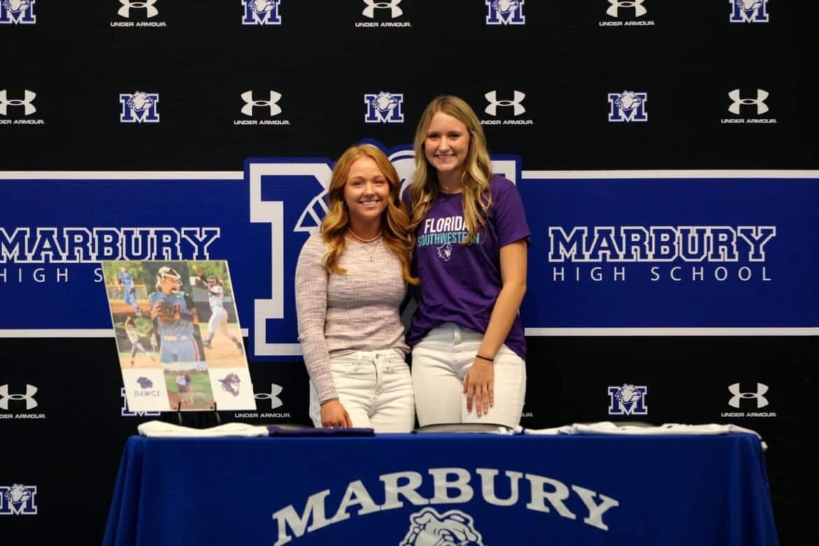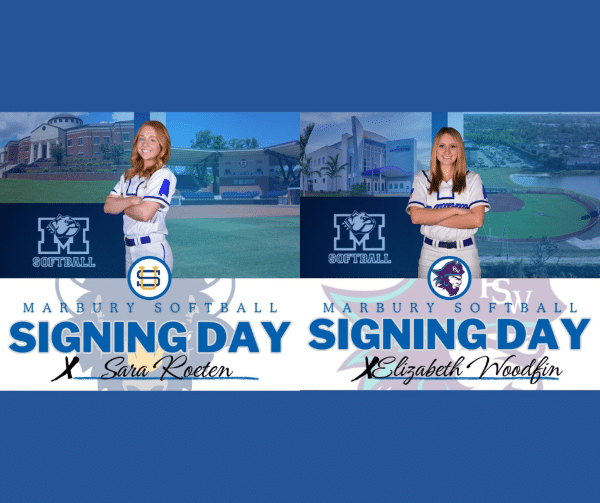 Two girls from the Marbury High School softball program have signed letters of intent to extend their athletic career past high school and to play at the collegiate level. Teammates Elizabeth Woodfin and Sara Roeten signed their letters last week as they go into their last season as a Marbury Bulldog.