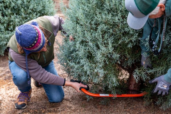 Some Christmas tree farms will have precut trees available to purchase. When selecting a precut tree, feel some of the needles and try to break them. Needles on dry trees will be brittle, whereas needles on fresh trees should bend but not break.