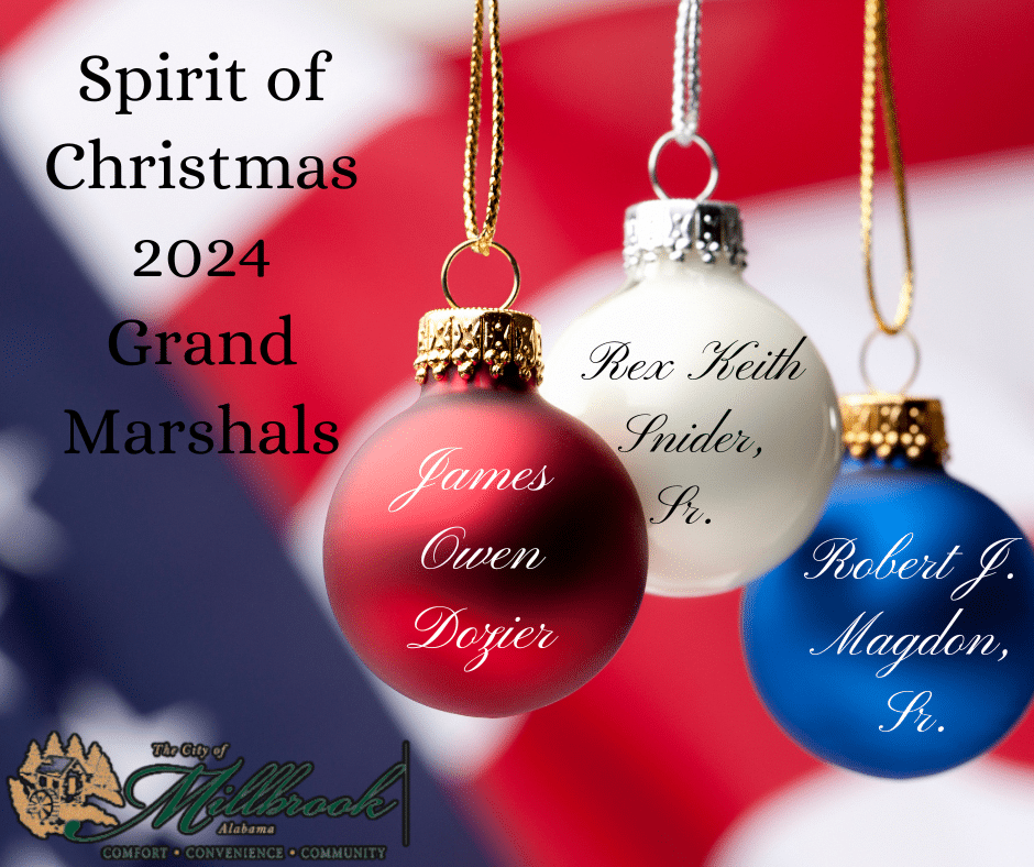 Hometown heroes will lead the way with a salute to service and a celebration of the holidays. The City of Millbrook and the Spirit of Christmas Committee has selected three distinguished gentlemen as the grand marshals for this year’s Spirit of Christmas Parade.
