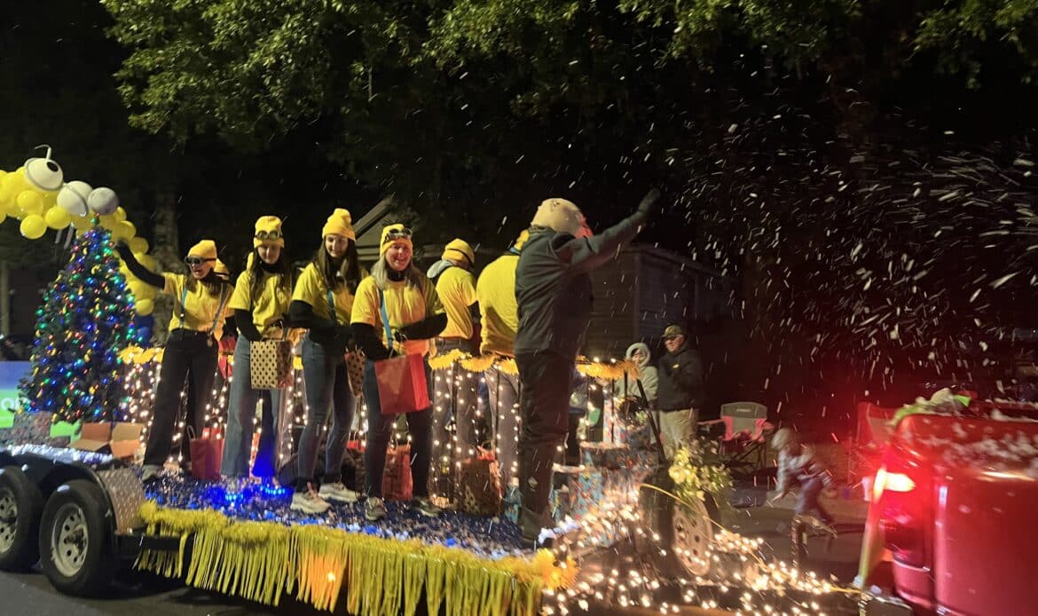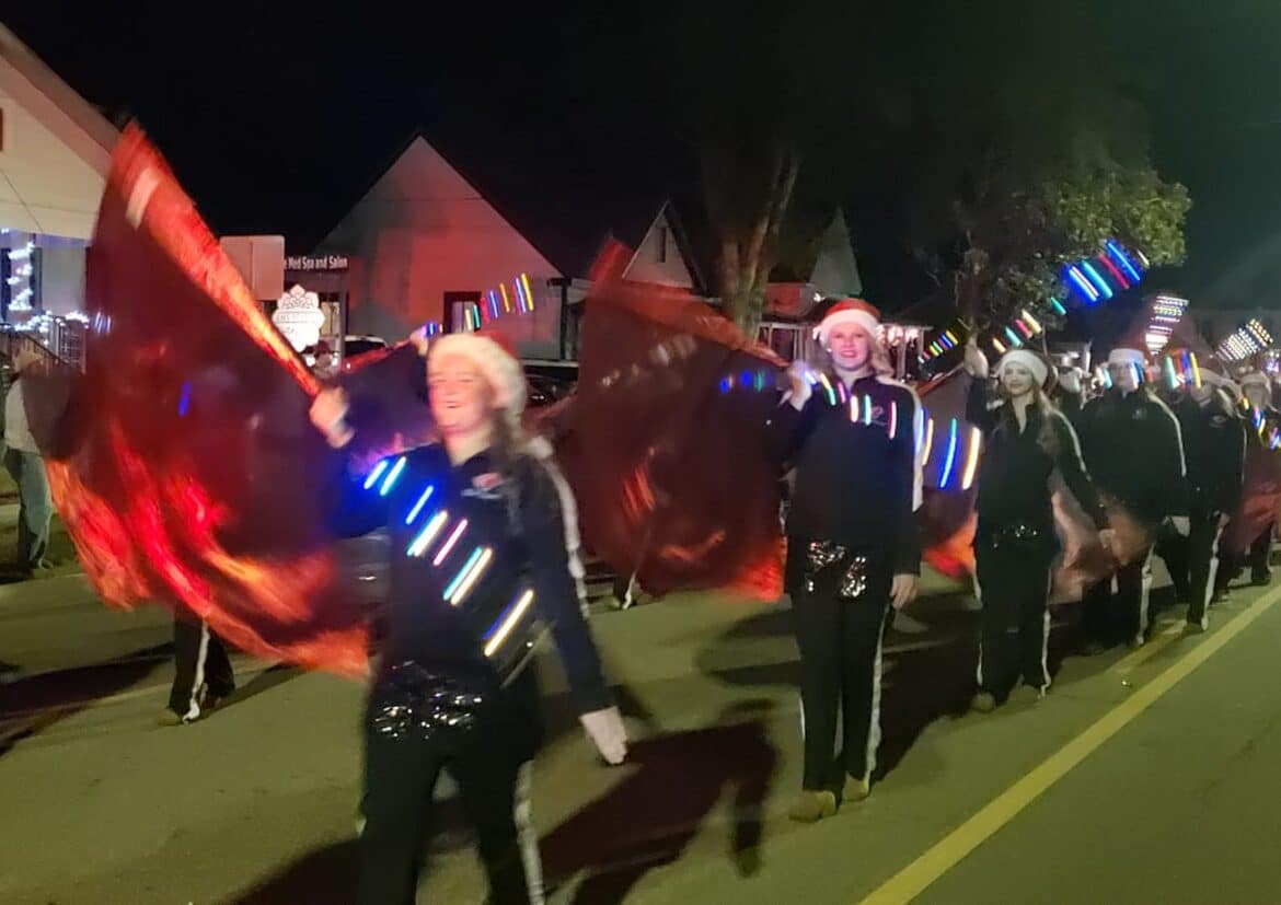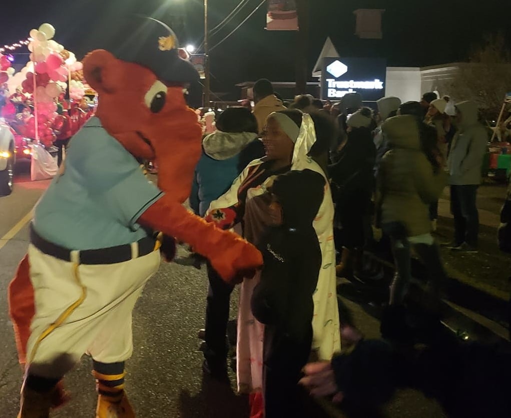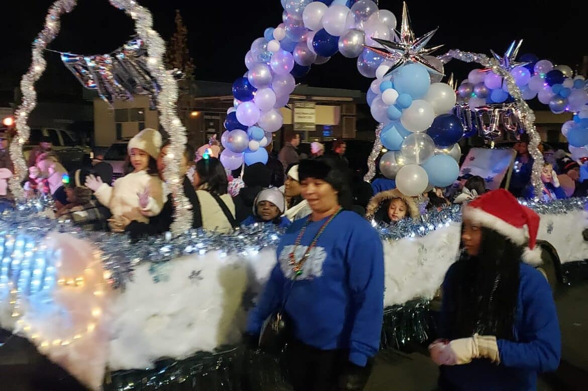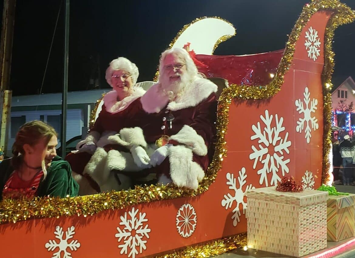 Traditionally, Santa and Mrs. Claus are at the end of the parade, but due to cold temperatures they made their appearance not far behind Grand Marshal Yee Yan Yankee” McKinnon. This was a way for families with small children to see the famous couple early, in case they needed to make an exit to warmer temperatures.