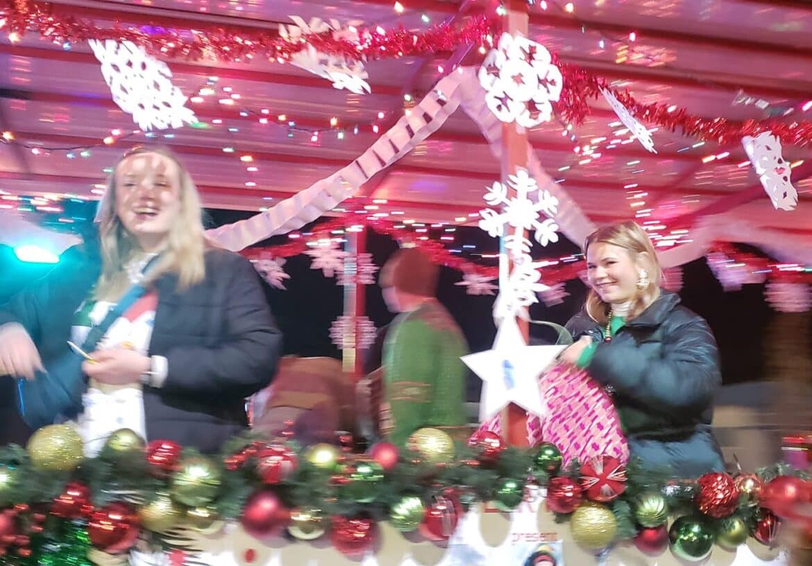 Attendees and float riders were bundled against the cold. Even some family pets joined in on the fun, with bright, warm sweaters.