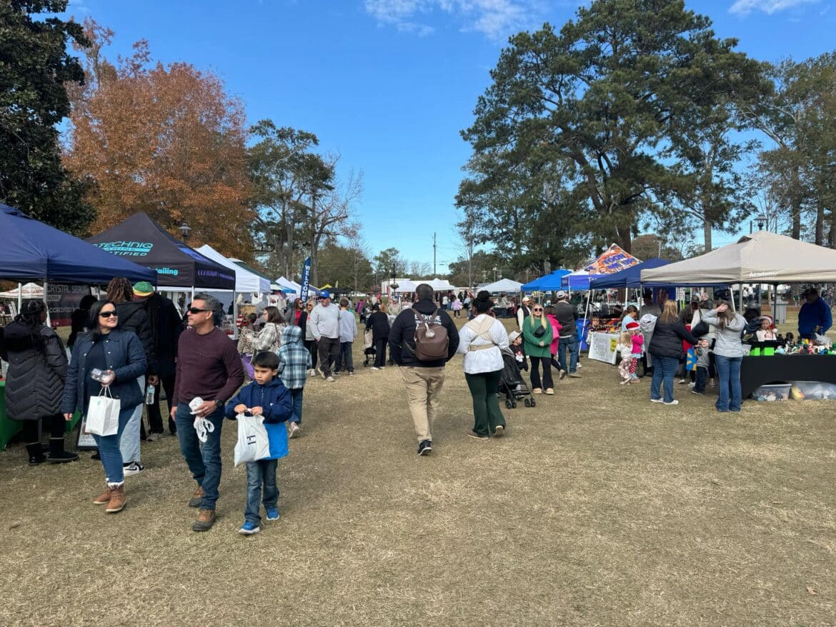 In the park, a packed crowd shopped with the vendors, ate some great food and enjoyed the decorations.