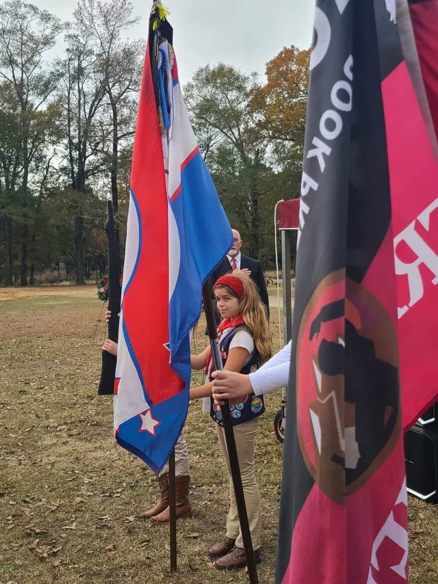 This morning, American Heritage Girls from Troop AL-0125 joined with veterans, officials and families to pay honor and remembrance to Veterans who served their country but have since passed away.